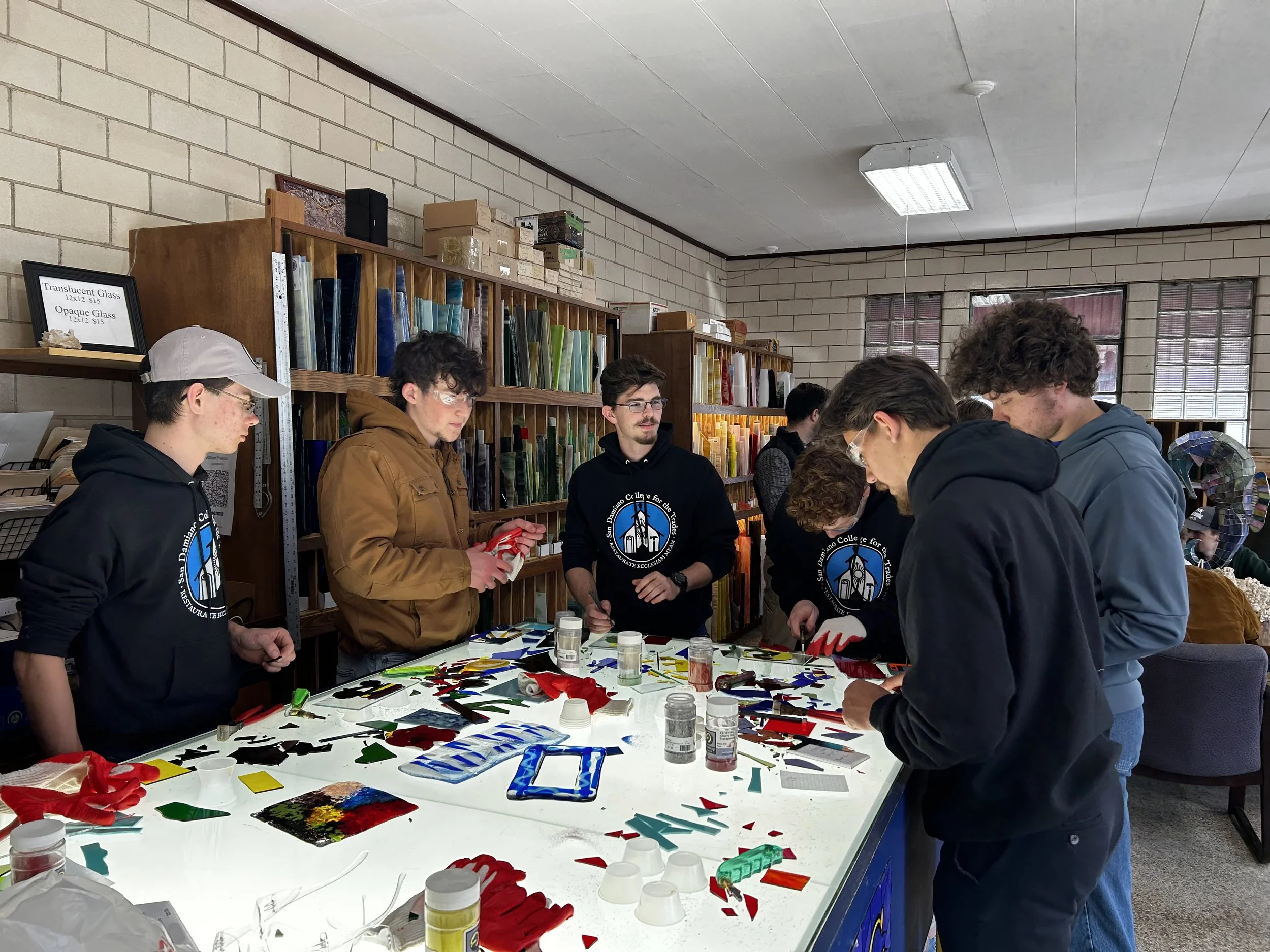 Two of our students work at Jacksonville Stained Glass. Recently, all of them traveled there for a miniature stained-glass build.