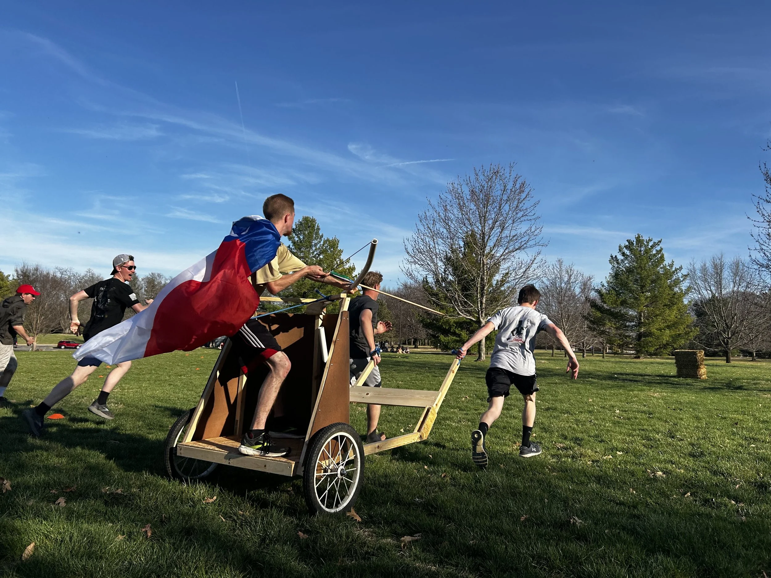 Henry Trainor takes aim at a bale of hay during our first annual St. Joseph Games celebrating a patronal solemnity!